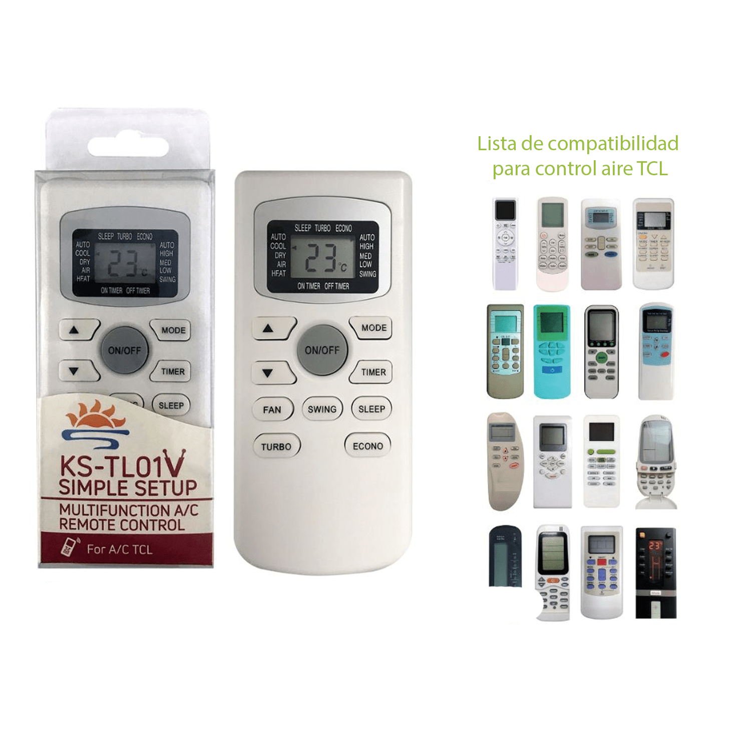 Control Remoto Universal para aire acondicionado TCL KS-TL01V. Funciona para la mayoría de aire acondicionado de TCL, control con pantalla LCD.