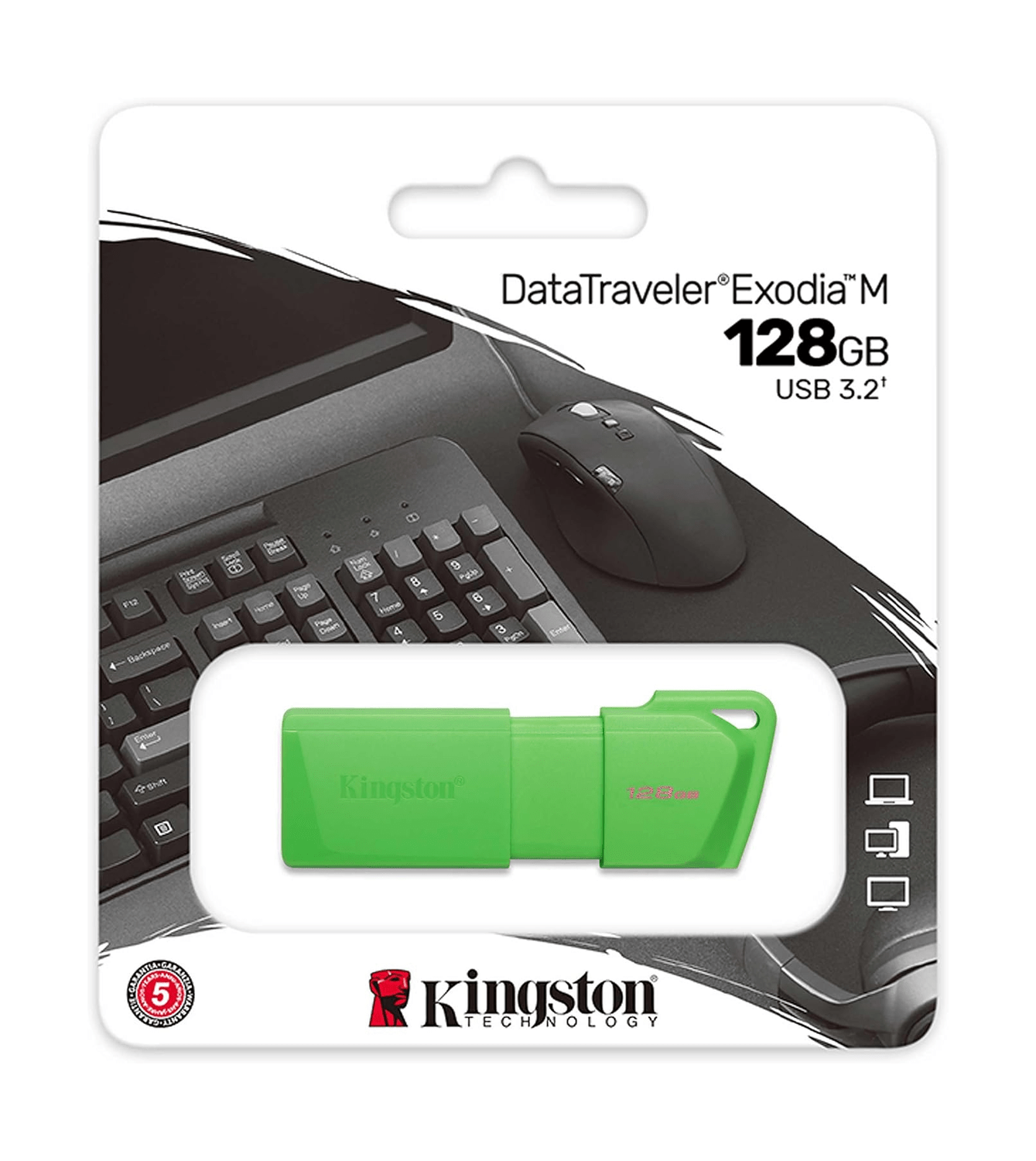 La memoria USB Kingston DataTraveler Exodia M, es un dispositivo de almacenamiento portátil con una capacidad de 128 GB. Con un diseño deslizable y un color verde atractivo, esta memoria USB es perfecta para transportar y transferir tus archivos importantes de manera rápida y segura.