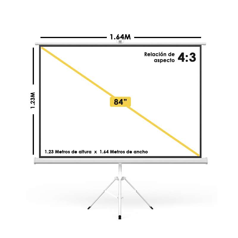 La pantalla de proyección manual T-Vision 84″ es la opción práctica y versátil para presentaciones, aulas o cine en casa. Con formato 4:3 HD y un tamaño de 1.23m de alto por 1.64m de ancho, ofrece imágenes claras y colores precisos gracias a su superficie de fibra de vidrio. Su diseño manual permite desplegarla y recogerla fácilmente, y el trípode incluido facilita su colocación en cualquier lugar sin necesidad de instalación fija. De color blanco, combina funcionalidad y portabilidad, ideal para presentaciones, clases o entretenimiento audiovisual en espacios reducidos.