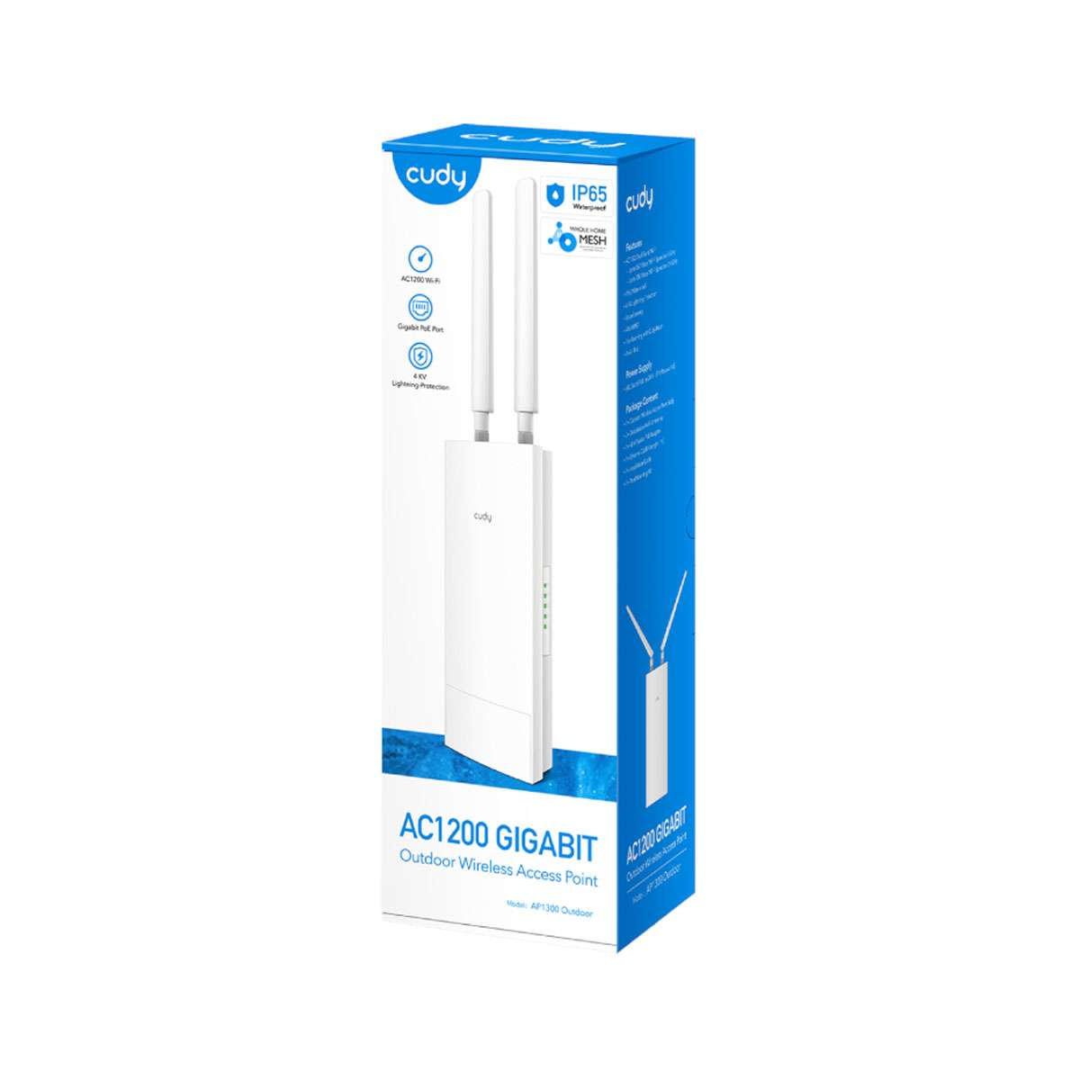 El punto de acceso inalámbrico Cudy AC1200 Gigabit para exteriores es un dispositivo Wi-Fi robusto que crea una red inalámbrica rápida con doble banda (hasta 867 Mbps en 5 GHz y 300 Mbps en 2.4 GHz). Tiene carcasa resistente al clima (IP65) para funcionar bajo lluvia o polvo en jardines, terrazas o espacios abiertos. Incluye un puerto Gigabit Ethernet con PoE para simplificar la instalación con un solo cable. Soporta modos como punto de acceso, repetidor o router, y puede integrarse en redes Mesh para extender el Wi-Fi. Gracias a funciones como MU-MIMO y beamforming, mejora la cobertura y el rendimiento con múltiples dispositivos. Es ideal para ampliar señal de Internet en áreas exteriores con conexión estable y de largo alcance.