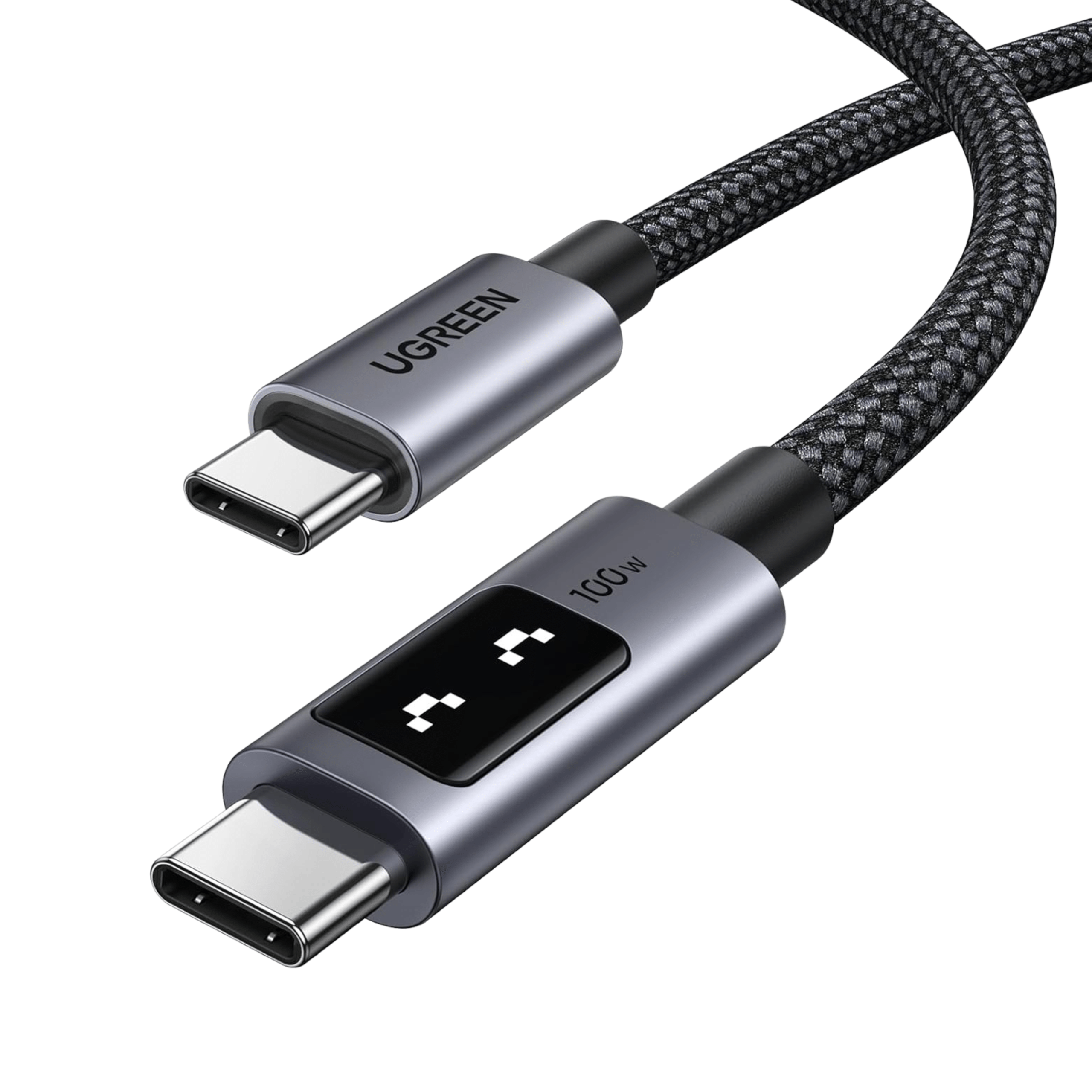 El UGREEN Uno redefine la conectividad combinando una potencia de carga ultrarápida de 100W y con un diseño innovador de estética retro. Este cable USB-C a USB-C, cuenta con una pantalla LED integrada que muestra en tiempo real el nivel de carga, permitiéndote monitorear la eficiencia energética de un vistazo.