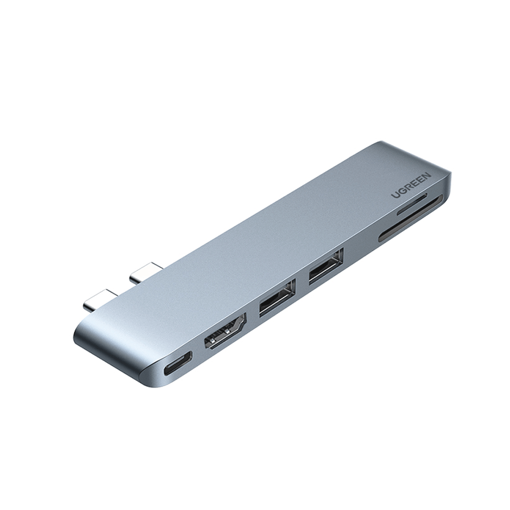 El hub se conecta a la MacBook mediante dos conectores USB-C, lo que le da acceso a dos puertos USB-A 3.2 Gen 1 con velocidades de transferencia de datos de hasta 5 Gb/s, ideales para periféricos como ratones, teclados y unidades de almacenamiento externas. Un solo puerto Thunderbolt 3 ofrece velocidades de transferencia de datos de hasta 40 Gb/s y admite carga de 100 W, lo que le permite conectar dispositivos que consumen muchos recursos o como puerto de carga para mantener su dispositivo encendido mientras lo utiliza. Un puerto HDMI le permite conectar su MacBook a una pantalla secundaria para disfrutar de imágenes nítidas y fluidas con resolución 4K y una frecuencia de actualización de 30 Hz. Transfiere contenido multimedia rápidamente desde su dispositivo móvil o cámara con lectores de tarjetas SD y microSD.